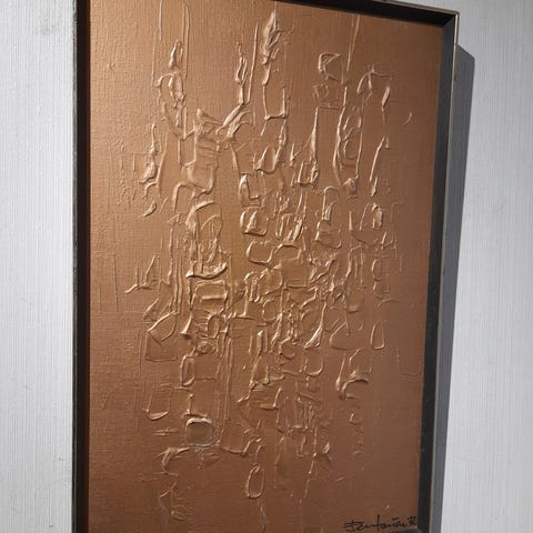 Et originalt maleri av R. Holum fra 1945 i hvit ramme.