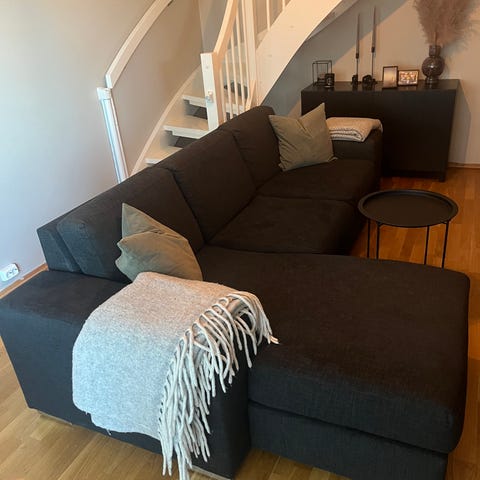 Sort Rhodeo sofa 3 seters (er som en 4 seters,plass til mange i sofaen) liten knirk i sofaen( mulig det kan strammes/justeres på skruer så det går bort,ikke veldig sjenerenes men kommer av og til en knirk
