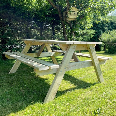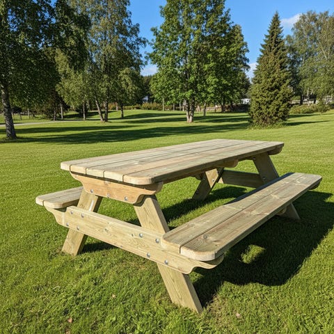 Møbler av impregnerte materialer, tåler å stå ute. Møbler på bildet er 2 meter lang. Kan kjøpe separat. Bord 1600 kr. Benk m/rygg med og uten armlene 1600 kr. Benk u/rygg 1100 kr. Set med bord og to benker med rygg 4500 kr. Kan lage på andre mål på bestilling.