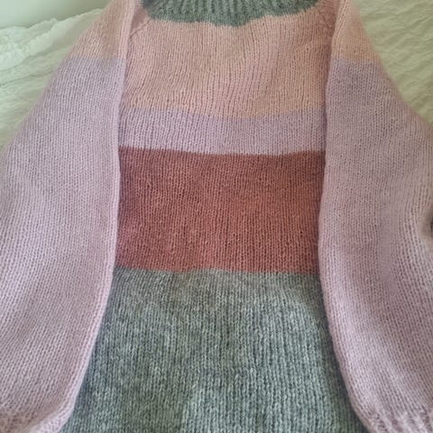 Genseren er litt kraftig og tykk, men samtidig luftig og veldig behagelig å ha på, den har litt silke i seg og faller godt på kroppen :)