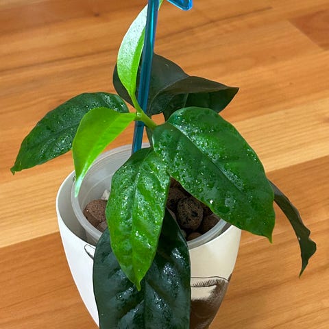 Selger plante i vekst, med potte. Voksblomst/Porselensblomst