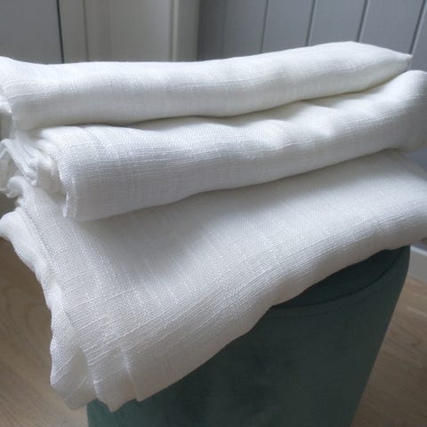 2 smale hvite gardiner. Tynt stoff. 43 x 236 cm