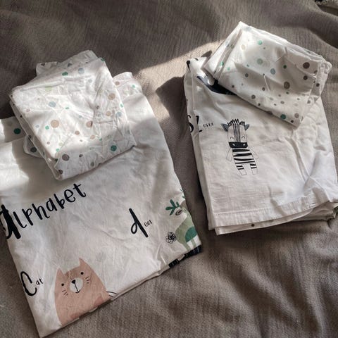 Jeg selger en serie med nydelige kvalitetstekstiler til barnerom i duse, harmoniske farger fra Södahl. Alt er helt nytt og selges til under halv pris av ny pris. Ny pris er oppgitt i annonsen. Annonsen oppdateres etter salg av enkeltdeler.