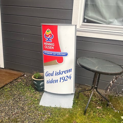 Nydelig eldre hvelvet reklameskilt fra Hennig-Olsen Is.