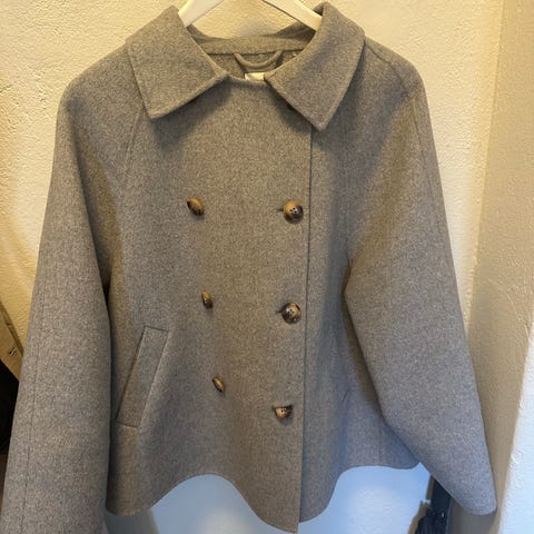Størrelse medium, men noe liten over skuldre/armer. Selges billig da den ble litt trang over armene, og jeg heller kjøpte en ny i størrelse large. Får komplimenter hver gang jeg bruker denne.