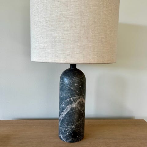Gräshoppa Table Lamp er en bordlampe og designklassiker fra Gräshoppa-kolleksjonen, designet av Greta Magnusson Grossman Fremoverbøyd stativ og fot i messing som kan roteres. I farge blå/grå og pent brukt men har fått noen små skrapsmerker på stangen som kommer av i forbindelse med flytting.