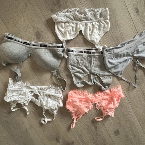 Pent brukt pluss en ny bikinioverdeler selges samlet for kr 200,-
