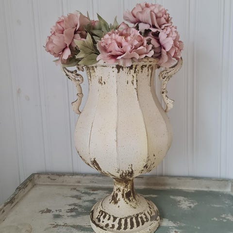 Urne turkis blå blått grønn grønt gullfarge gull gulldetaljer hank håndtak krukke dekorasjon pynt stue porselen pyntekrukke kitsch shabby chic blomster vintage pyntegjenstand styling interiør keramikk trend dekorativ dekorasjon blomst stil innredning bordpynt urne landstil landlig cottage borddekorasjon retro secondhand innendørs hytte hage utendørs pyntegjenstand core potteskjuler vase blomstervase gulvvase blomsterkrukke blomsterurne blomsterpotte hytta rose