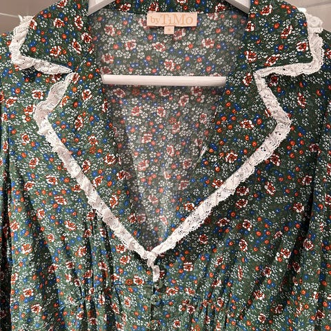 Kjolen henger veldig pent på, det er volanger på armene, og nederst. Det gjør kjolen utrolig søt. 💖