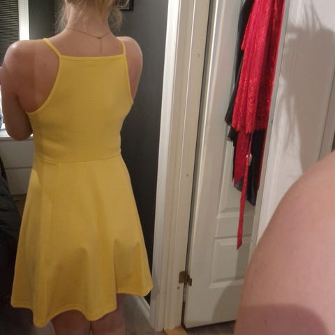 Fin og enkel sommerkjole i en herlig og frisk gulfarge. Den kan brukes på veldig mange måter; over bikinien, med en lett åpen skjorte og sneakers, eller med sandaler og store øreringer. Perfekt å ta med på ferie når du vil pakke lettest mulig.