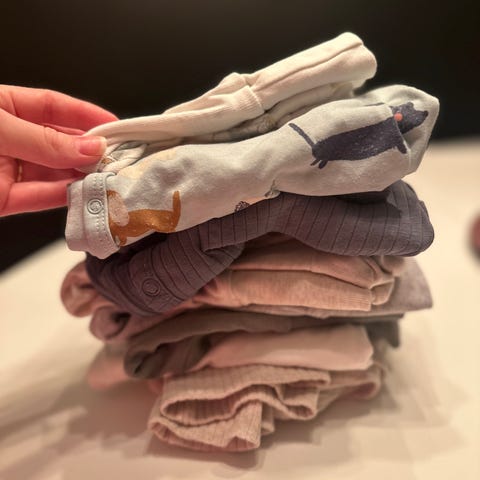 8 stk Pent brukt. Ingen hull som jeg finner, de fleste er uten flekker. Det jeg finner av flekker er en blek flekk på den ene t-skjorten og 2 små flekker på innsiden av armen på den lyse rosa genseren med sykkel (Se bilder).