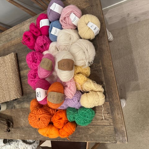 100g (kond.) ca 12 m. Nok til ett sjal. Lofty Schachenmayr smc. Engelsk oppskrift inni båndet. 50,- pr nøste