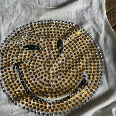 Hvit Tskjorte med paljettskrift. Aldri brukt