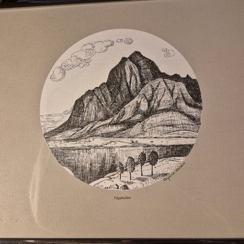 Flott bilde med motiv fra Nordland, utført av Tordis Mikkeljord i 1980