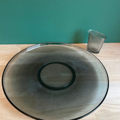 To fat + en asjett selges samlet for 200kr.