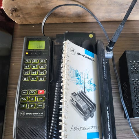 Mobiltelefon fra 1970-1980 tallet. Mangler batteri, ellers komplett. Tung er den.