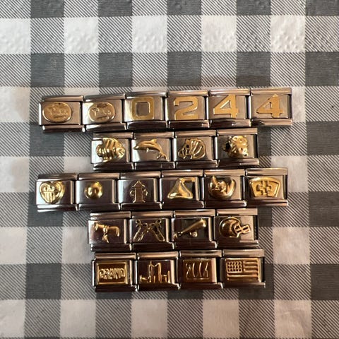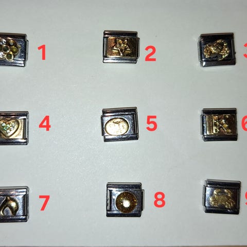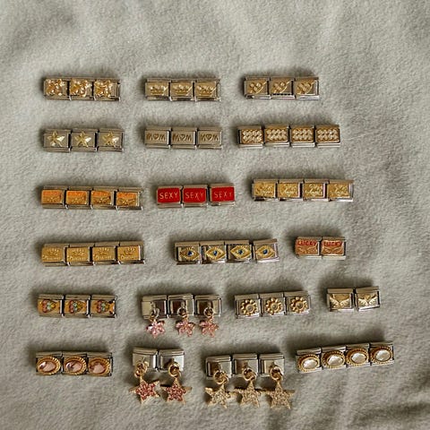 Ledd / link / links charm charms som passer til Nomination / Nominationarmbånd /Firenze / Mediterraneo / Firenzearmbånd / Zoppini armbånd / leddarmbånd / etc og andre merker som laget armbåndene på 90-2000 tallet og frem til idag. Passer til alle slike armbånd.