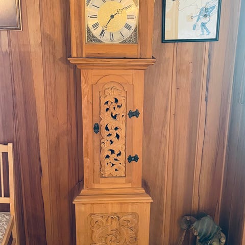 Dekorativt hvitt gulvur selges snarest. Urverket virker som det skal.