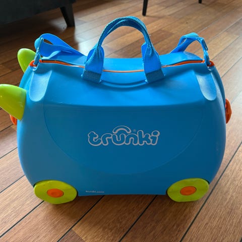 Pent brukt Trunki barnekoffert selges. Perfekt for små barn på flyplass.