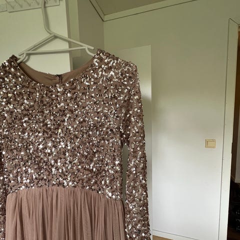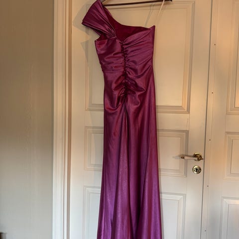 Flott lang kjole fra Larvik Brudesalong. Kun brukt to ganger. Perfekt kjole som bryllupsgjest. Kjolen har splitt, se bilde.