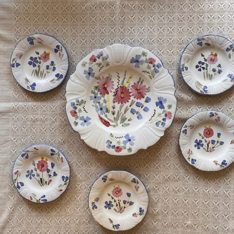 Nydelig keramikk med design av Ragnar Grimsrud. Håndmalt. Fra 1940 tallet? 50kr stykket. Har 7 stykker igjen.