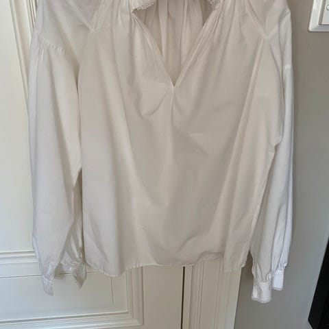 Pent brukt bunadsskjorte til Røykenbunad (Røykendrakt), str S - liten M.