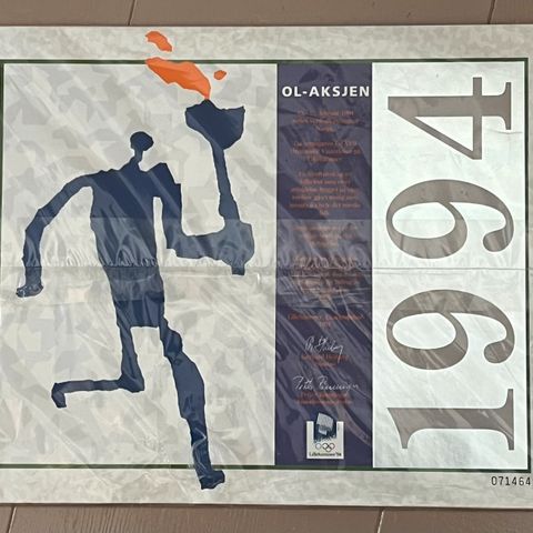 "Aksjebrev" fra innsamling før Lillehammer-OL 1994 med fakkelbærer-pin.