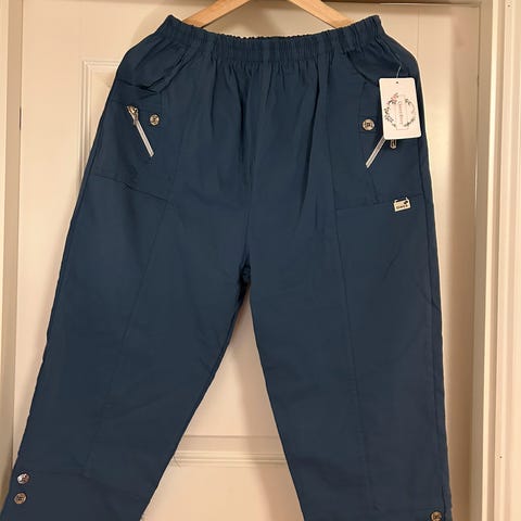 To capribukser fra Tara/Days like this, lite brukt, mørk blå og beige. Str 46. Stretch.