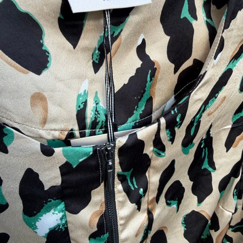 Mønstret kaftan med v-hals og splitt i sidene. Trekvart lange ermer med splitt.
