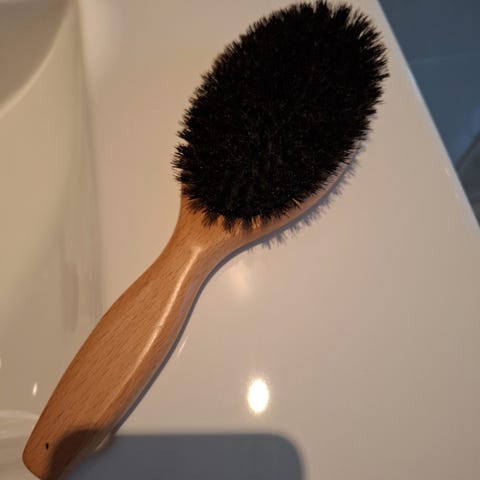 Kjøpt på en butikk som selger alt for hår. Brukt kun håndfull antall ganger for jeg foretrekker kam.