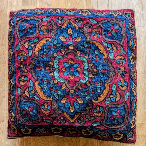 Nydelig eldre håndbrodert duk i lys beige.(125x 122) Pent brukt. Retro...