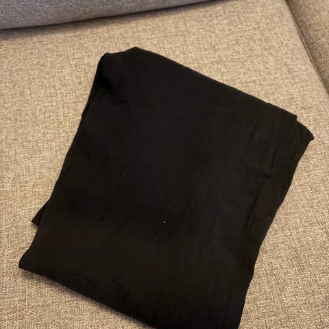 Lang, stroppeløs kjole fra hm. Vanskelig å ta ordentlige bilder siden den er sort. Den er lang, med splitt i hver side, strikk i livet og dobbelt stoff øverst så den sitter pent på. En veldig pen kjole som faller fint🥰