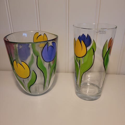 Håndlaget 7,5 cmhøy diam7,5 med gullkant 2stk