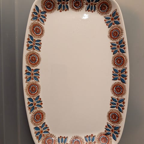 Pent lite fat Korulen fra Egersund. Mål: 28,5 x 19,5 cm. Svake bruksspor, ellers helt og pent. Kan sendes med PostNord for kr 69,-.