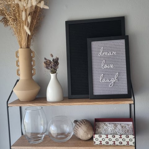 2 stk Bilderamme med plass til 3 bilder, hylle med knagger og blomsterpotte til å henge på vegg fra Perfekt Home. Ramme og hylle er ubrukt i eske. 50kr pr ting