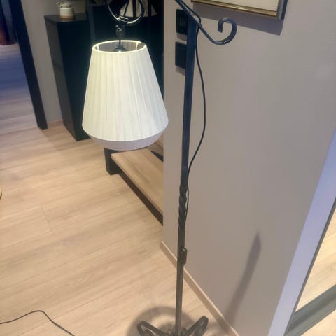 Stålampe i smijern med stoffskjerm