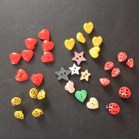 Over 100 barneknapper i plast og tre selges for 50,- + frakt