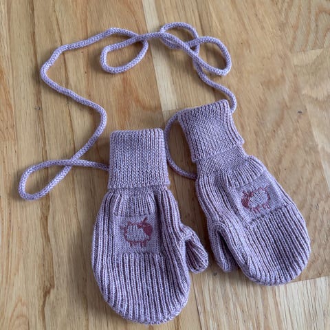 Votter i ren ull med refleks. Aldri brukt, lappen er fortsatt på. Står one size, men tipper de passer mellom 2 og 4 år.