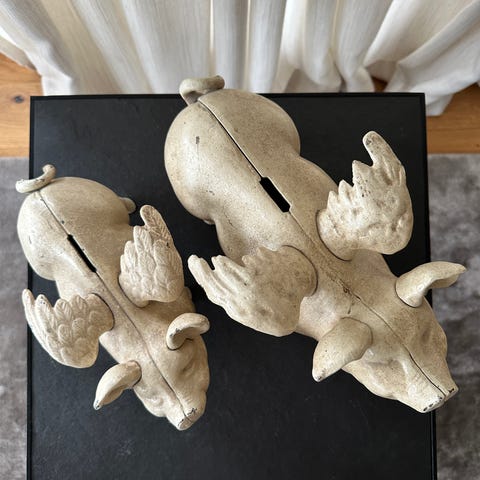 Gode museumskopier av sen 1700-talls Louis seize messing lysestaker. Siden kvaliteten er god vil jeg tro de er engelske. Stakene har patina og jeg har ikke pusset de. God høyde, 26,5 cm