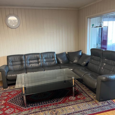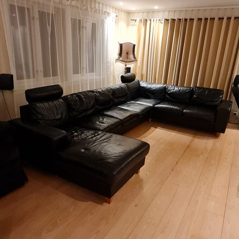 Selger en sort skinnsofa fra Hjort Knudsen, 3+2 seter. Godt ivaretatt og fint brukt. Selges samlet.