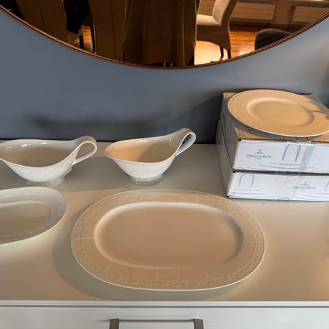 Selger ubrukt fat til sausenebb i serien White Pearl fra Villeroy & Boch.