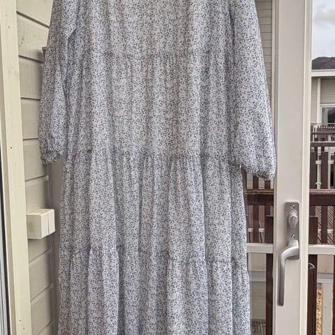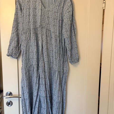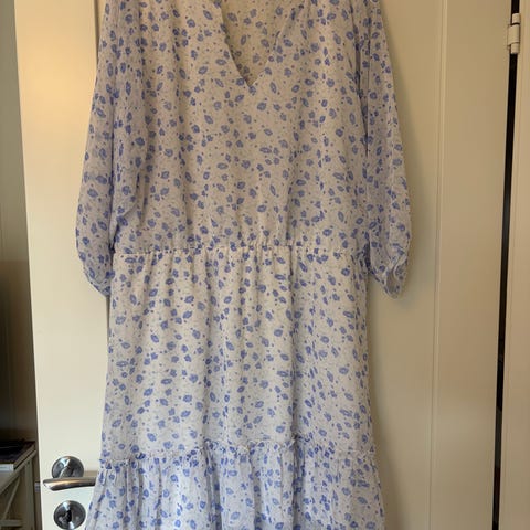 Lys blå blomstret kjole fra Massimo, 100% viskose, brystvidde 58 cm og lengde 100 cm. Nydelig sommerkjole.