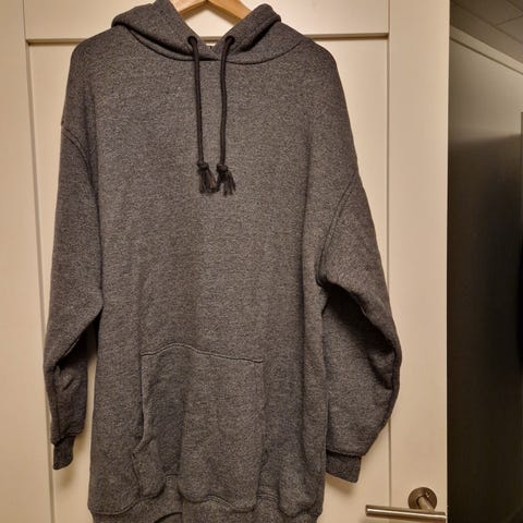 Svart Bershka hoodie kjole, størrelse small. Har hatt den i et lager i Spania, lukter av lageret, bør gå bort ved vask / bruk