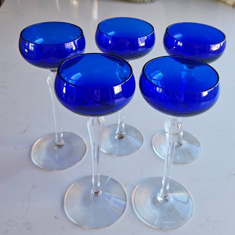 Retro likørglass med stett , blå glass / krystall