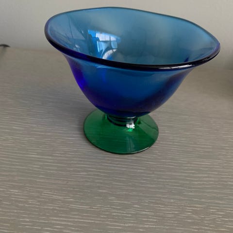 Selger blått likørglass med stett fra 50-tallet . Glasset er i fin stand, og lite brukt.