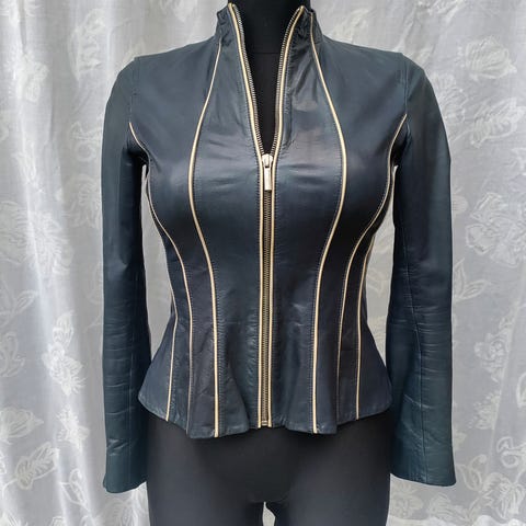 Spesiell damejakke i dongeri/"skinn"