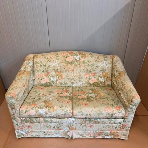Sofaen har stått lagret på høykant over år. Alle deler er så godt som intakt, men gamle. Fjæring i sofabunnen virker ok. Skumgummi i enkelte av sofaputene bærer mest preg av tiden. Vil tro at sofaen med litt "schining" kan gjøre god nytte enda en stund til.
