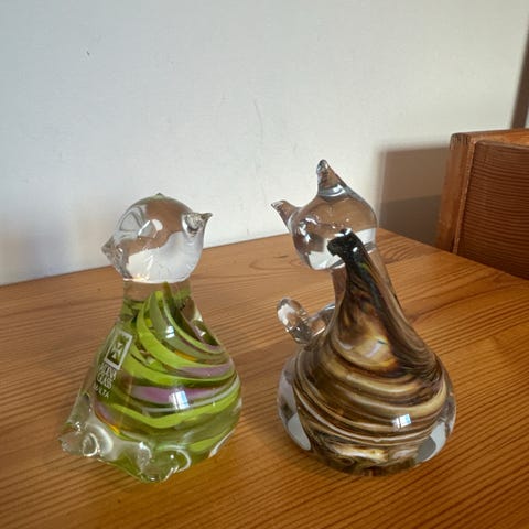 Stor orange fugl og liten grønn solgt.