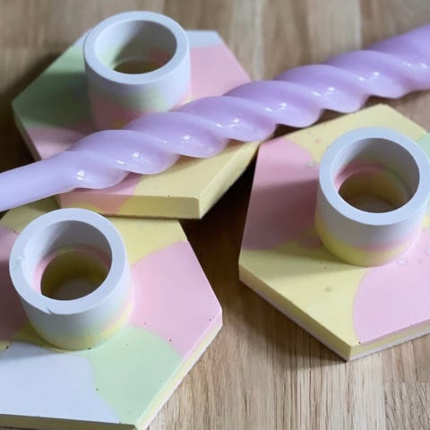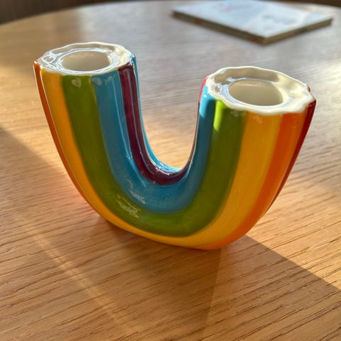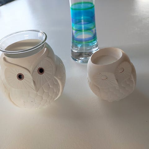 Utrolig fine lysestaker som jeg ikke har plass til. Noe krakelering pluss lite skår i den største. Ikke av betydning.