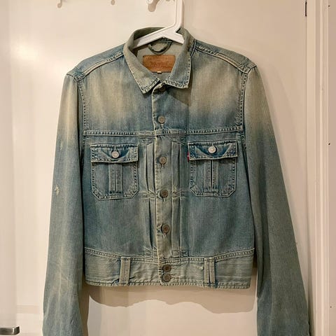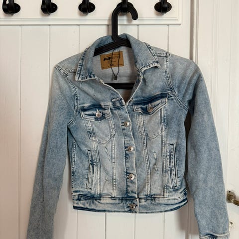 Lys denim jakke. Pent brukt. Str xs. Må hentes i Kristiansand eller sendes om kjøper betaler frakt.